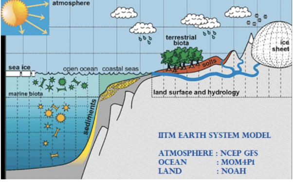 The Ministry of Earth Sciences (MoES), Govt. of India and the National Oceanic and Atmospheric Administration (NOAA), USA, entered into a formal agreement to collaborate on the implementation of the National Centers for Environmental Prediction (NCEP) weather and seasonal prediction system in India during 2011. As part of this collaboration, the India Meteorology Department (IMD) and National Centre for Medium Range Weather Forecasts (NCMRWF) implemented the high-resolution atmospheric Global Forecast System model with three-dimensional variational data assimilation at IMD for short- and medium-range weather forecasts. The coupled ocean–atmosphere model, Climate Forecast System version 2 (CFSv2), with a high-resolution atmosphere, was implemented for seasonal prediction at the Indian Institute of Tropical Meteorology (IITM). To address the long-term critical need in India for a climate model that would provide reliable future projections of Indian monsoon rainfall, IITM planned to build an Earth system model (ESM) based on the CFSv2 framework.